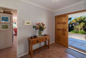 This property is a breath of fresh air. Delightfully private, with a veiled street presence, it evokes a relaxing sense of light and space enhanced by 1,687m² of grounds. The flowing floor plan will capture that attention of busy families. Living areas open to a large wrap around deck which captures the sun perfectly. A 330m² more or less generously proportioned retreat, the four to five bedroom home is perfect for entertainers and a relaxed family lifestyle. The home incorporates a large kitchen, casual dining/family room, formal dining, lounge with office nook plus a second separate lounge. A double bedroom and large bathroom are also at ground level. Upstairs comprises two spacious bedrooms serviced by a bathroom plus a further upstairs area accommodating a large bedroom and separate office offering an ideal work-from-home situation. Abundant storage and gas heating, cooking and water. The original 1950's bungalow has been extensively renovated over the years and completed to a high standard. Shops and schooling all within an easy stroll.