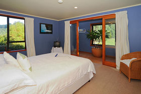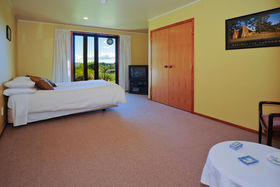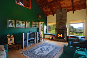 The elegant home has four double bedrooms, two of which have sunrooms attached. High vaulted Douglas Fir sarked ceilings give an impression of space and the under floor diesel fired heating keeps the whole house comfortably warm but there is also a open fire with elegant schist chimney for added ambience. Upstairs a large rumpus room provides extra living with views across the spacious lounge/dining areas below.