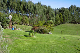 The elevated house site takes full advantage of magnificent lake and rural views yet is shielded by native bush and stands of eucalyptus trees. An abundance of wildlife surround the property and pheasant and quail come daily to the front lawn.