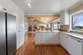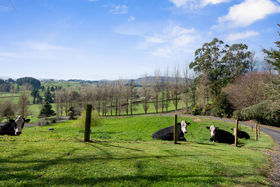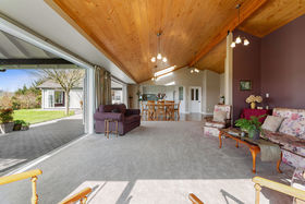 Outdoors, the expansive grounds provide space for play, pets, and outdoor entertaining. The well established gardens are easy-care, and native planting behind the home provides a sheltering backdrop. The double garage ensures secure parking, while the four-bay shed with lean-to offers excellent storage, hobby space, or workshop potential. There are five small paddocks currently used to raise beef.