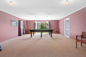 The spacious kitchen connects to the open-plan dining and sizeable lounge, plus an adjoining media/family room. Large french doors and windows draw in natural light and frame the sweeping views of the surrounding valley. A semi attached games/poolroom adds to entertainment options.