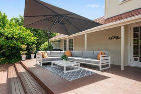 Tucked away behind the charming road front facade is an oasis of peace and privacy. Step onto the sunfilled back deck and enjoy the tranquil outlook over a vista of lush green, enjoy the harvest of pears, plums and apples from your very own fruit trees. Bring the harvest indoors and enjoy making your own jam and treats in the bespoke designer kitchen. This open plan family area is all about sharing family time together, while a formal dining room and formal lounge offer areas of retreat for more formal occasions. Downstairs also offers a convenient office that allows those working from home to be near enough the kitchen for a well deserved tea break, yet also features french doors overlooking the garden.
